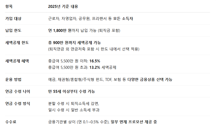 - 납입액에 대한 세액공제는 연말정산에 바로 반영되며, 고소득자일수록 절세 효과가 큽니다.