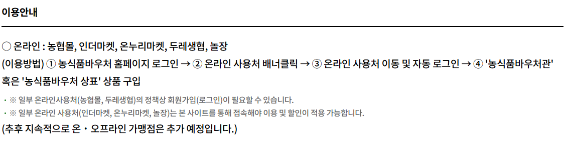 - “농식품바우처 사용 가능합니다”